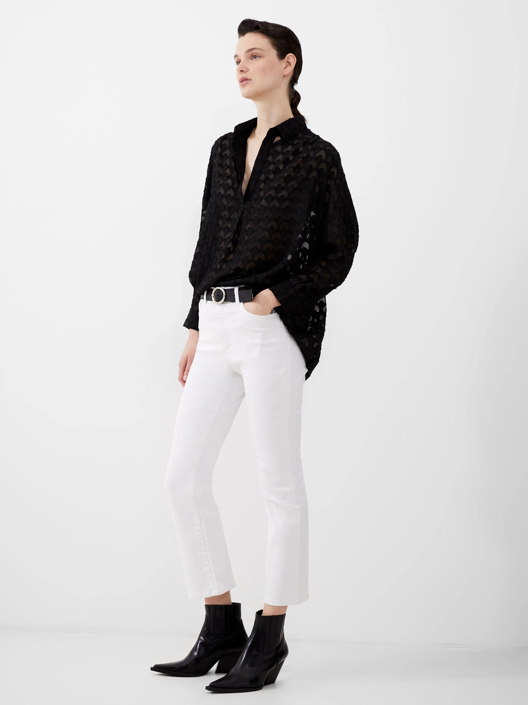 - Fabric: stretch, denim, white